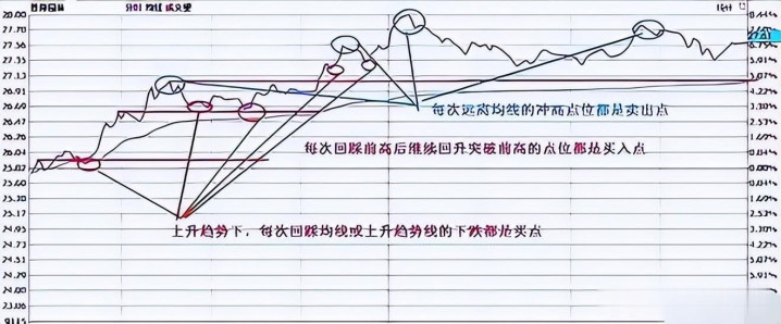 3、上升趋势下,每次回踩均线或上升趋势线的下跌都是买点。